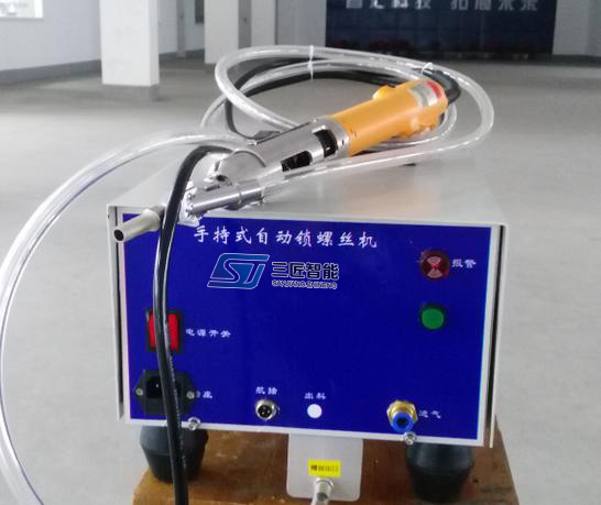 手持式鎖螺絲機(jī)主要由送料系統(tǒng)將螺絲排序并通過(guò)分配器分配螺絲,管道將螺絲送到起子;再由電動(dòng)或氣動(dòng)起子將螺絲鎖入產(chǎn)品中的鎖付系統(tǒng)。相對(duì)于一手拿螺絲、一手拿電批或氣批的鎖螺絲動(dòng)作,自動(dòng)送鎖螺絲機(jī)可以解放一只手出來(lái),只需一只手提起起子對(duì)準(zhǔn)螺絲孔位鎖螺絲即可。當(dāng)鎖完一顆螺絲后也只需提起起子對(duì)準(zhǔn)下一個(gè)螺絲孔位鎖螺絲,機(jī)器會(huì)自動(dòng)在提起起子的瞬間將一個(gè)螺絲輸送到起子下,等待鎖下一粒螺絲,如此重復(fù)。
